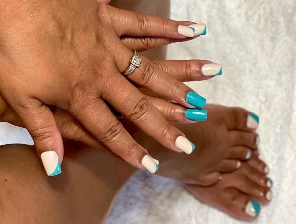 • The luxury pedicure and manicure soak, scrub, cream, file, buff, cuticle work, exfoliation, massage and top coat while we wash and massage your hands and feet