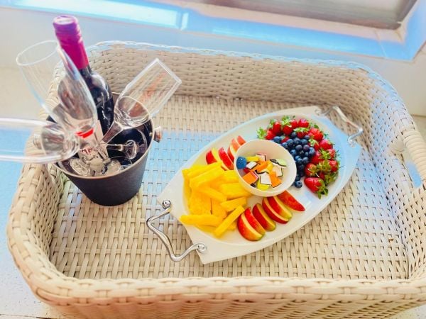 • Floating tray or table set up with breakfast or fruits platter x 2